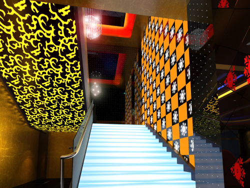 工程說明:設(shè)計師在總體構(gòu)思確定了現(xiàn)代、時尚、新穎,高品味的環(huán)境是本設(shè)計的使命,新穎的色彩光影材料的搭配,將KTV娛樂場推向時尚、新穎舞臺,也給賓客帶來賞心悅目的高雅環(huán)境
